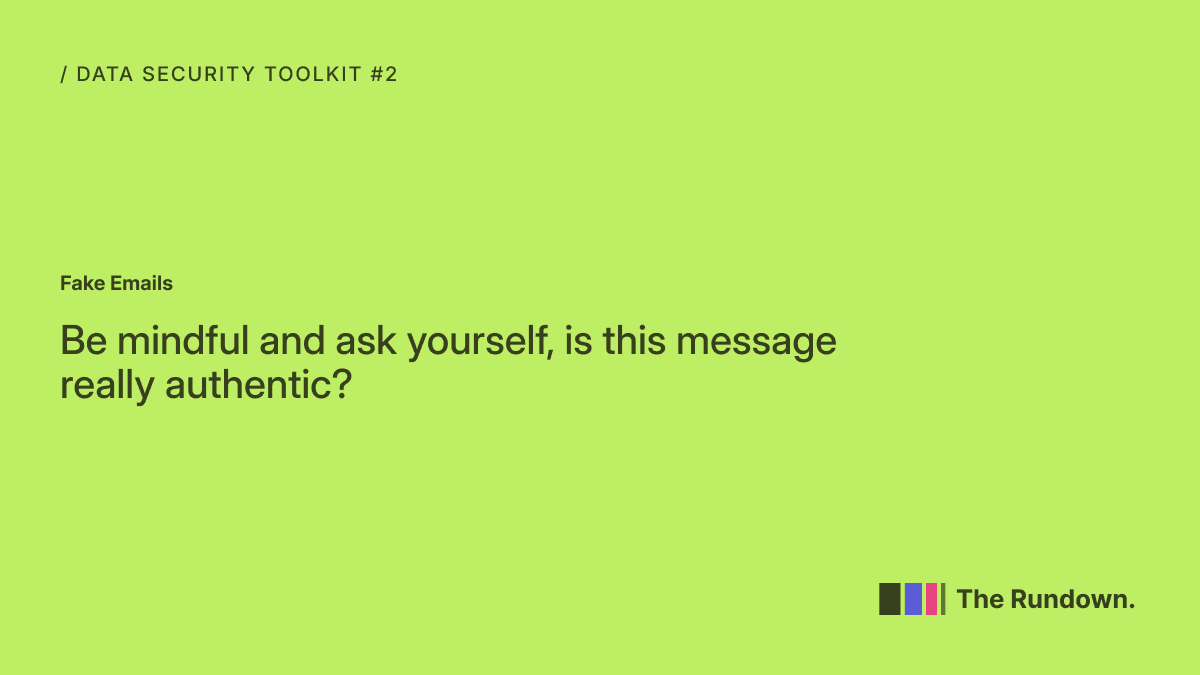 This series is focused on your personal digital hygiene and practices. This data security toolkit is a good refresher and contains some information that you can immediately start practicing.