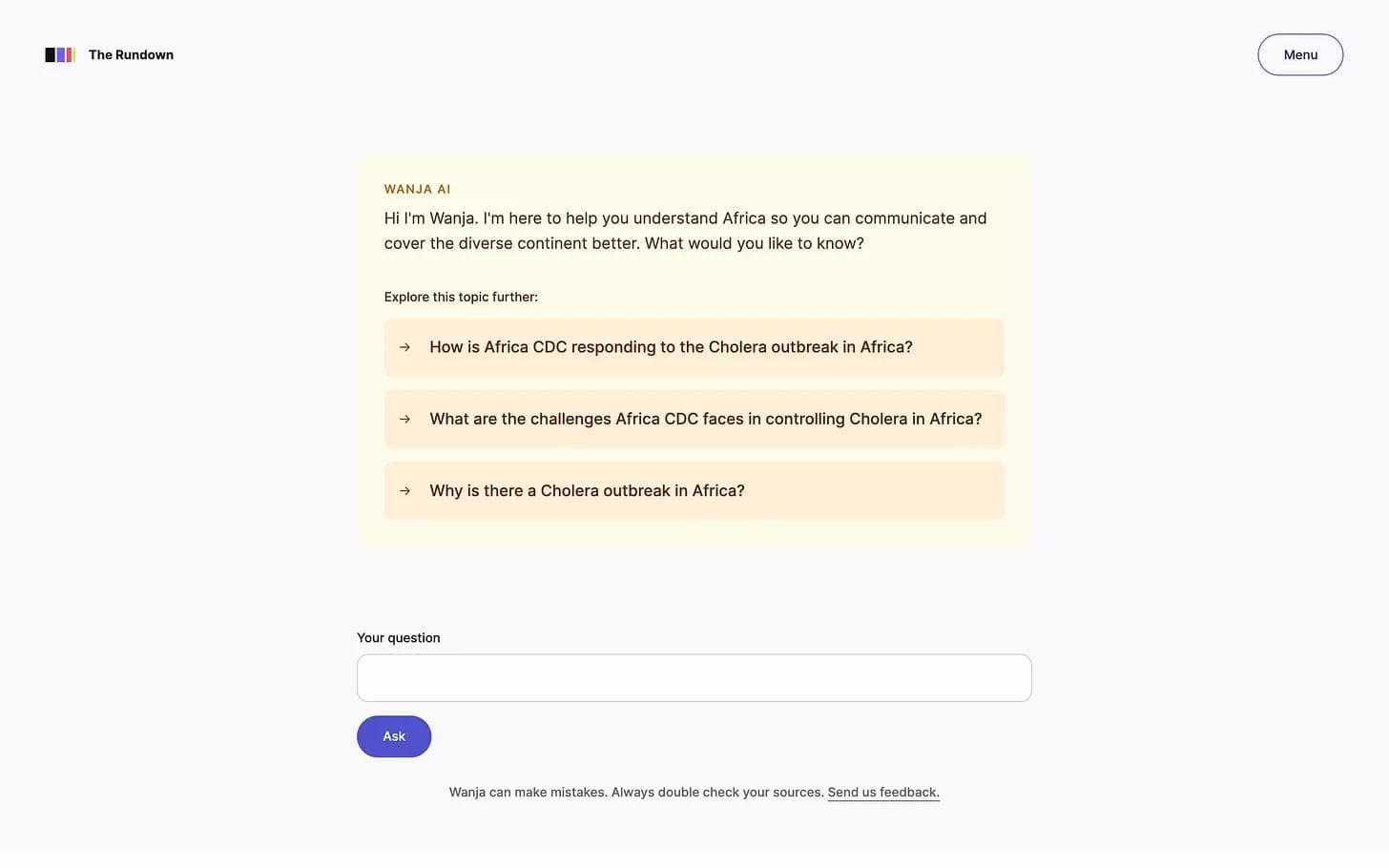At the moment, as the Rundown team is building Wanja, your guide to understanding Africa, we are using retrieval-augmented generation technology (RAG) built on open AI. We are prototyping this and testing chunking methods and the coherence of retrieval. Thomas (the Rundown co-founder) and I could also build on Anthropic. Or on Gemini. None are African. And so whatever data I may own now lives on a western platform. Give me an African option.
