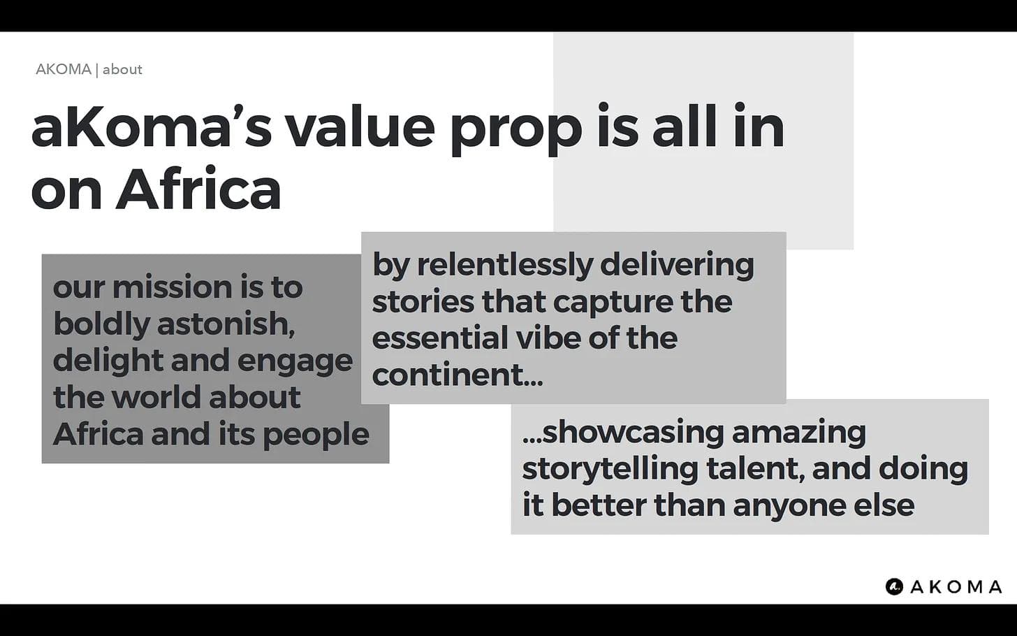 Fashi Mindset by Chidi Afulezi and I invested a huge amount of blood, sweat, and tears in our start-up (now defunct), aKoma Our message was encapsulated in this TED talk: Why the most important person in Africa is the storyteller.
