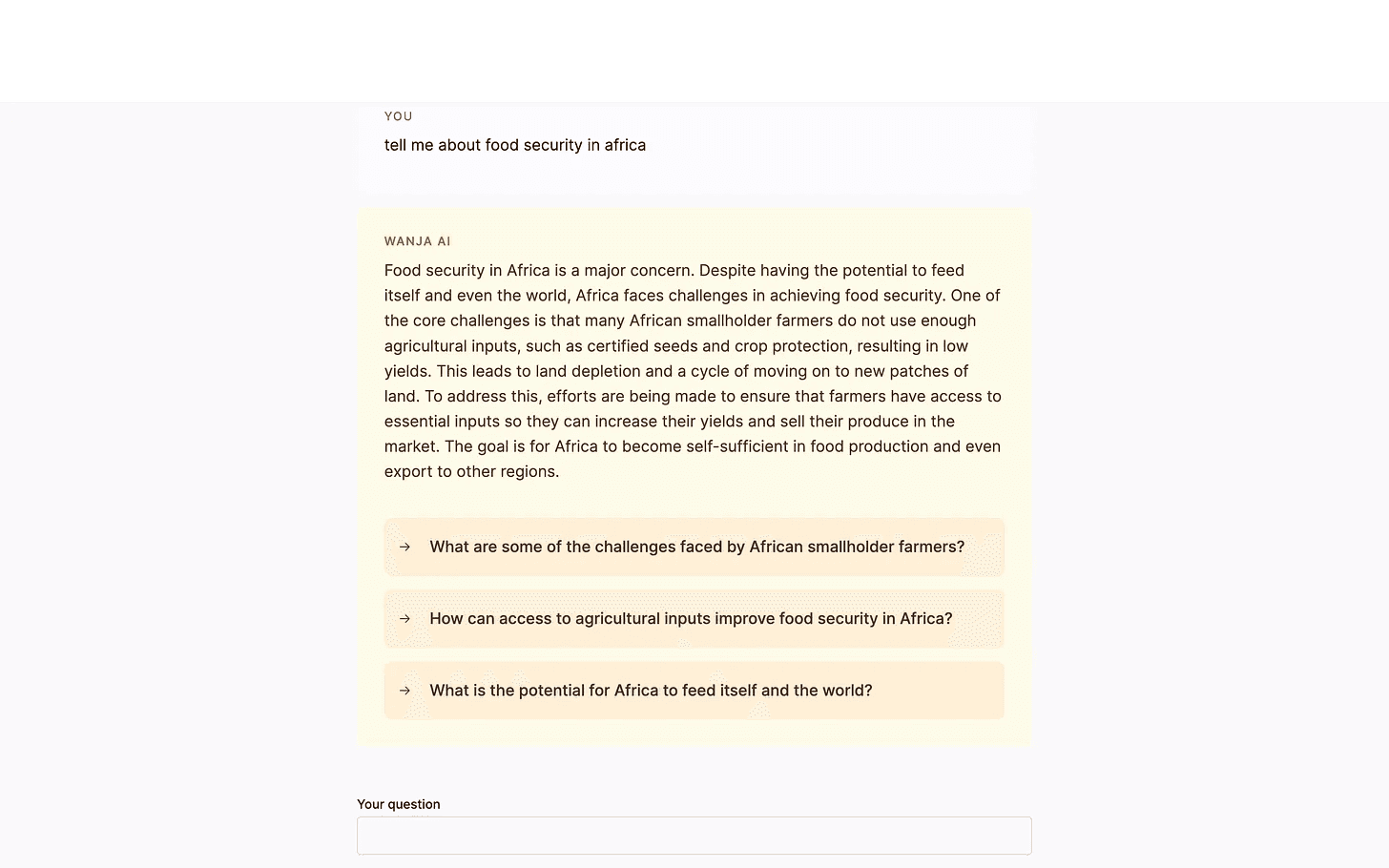 Our team at The Rundown is currently running a RAG by creating Wanja. She is your guide to understanding Africa and ultimately helping you with communications and information. We have taken data sets, credible interviews, and publicly available data on climate in Africa, creative and cultural industries, and how to do business in Africa. We have structured the data for all this.