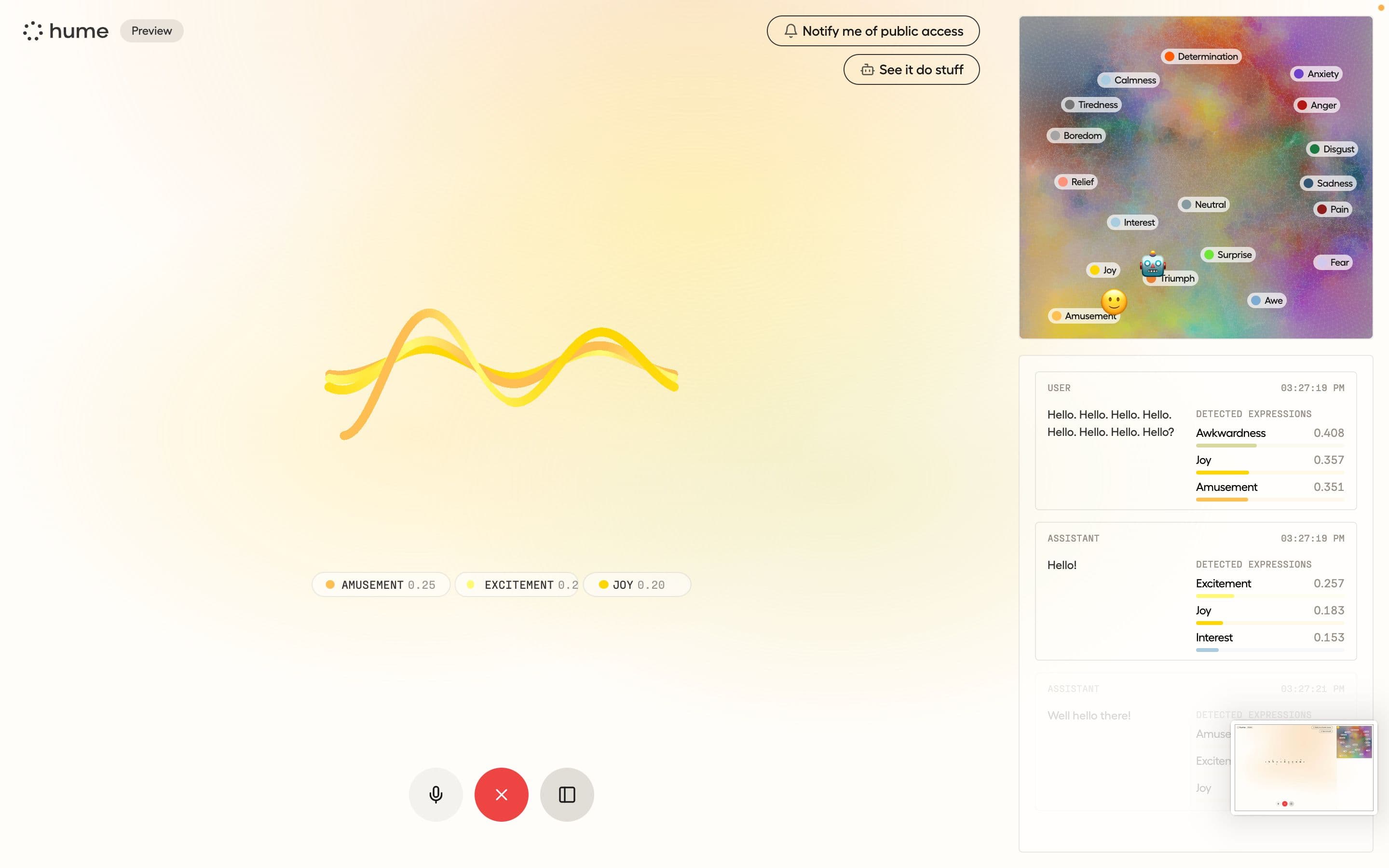Hume has created a conversational partner who leads with emotional intelligence and empathy. 10 years of training—this is the result.