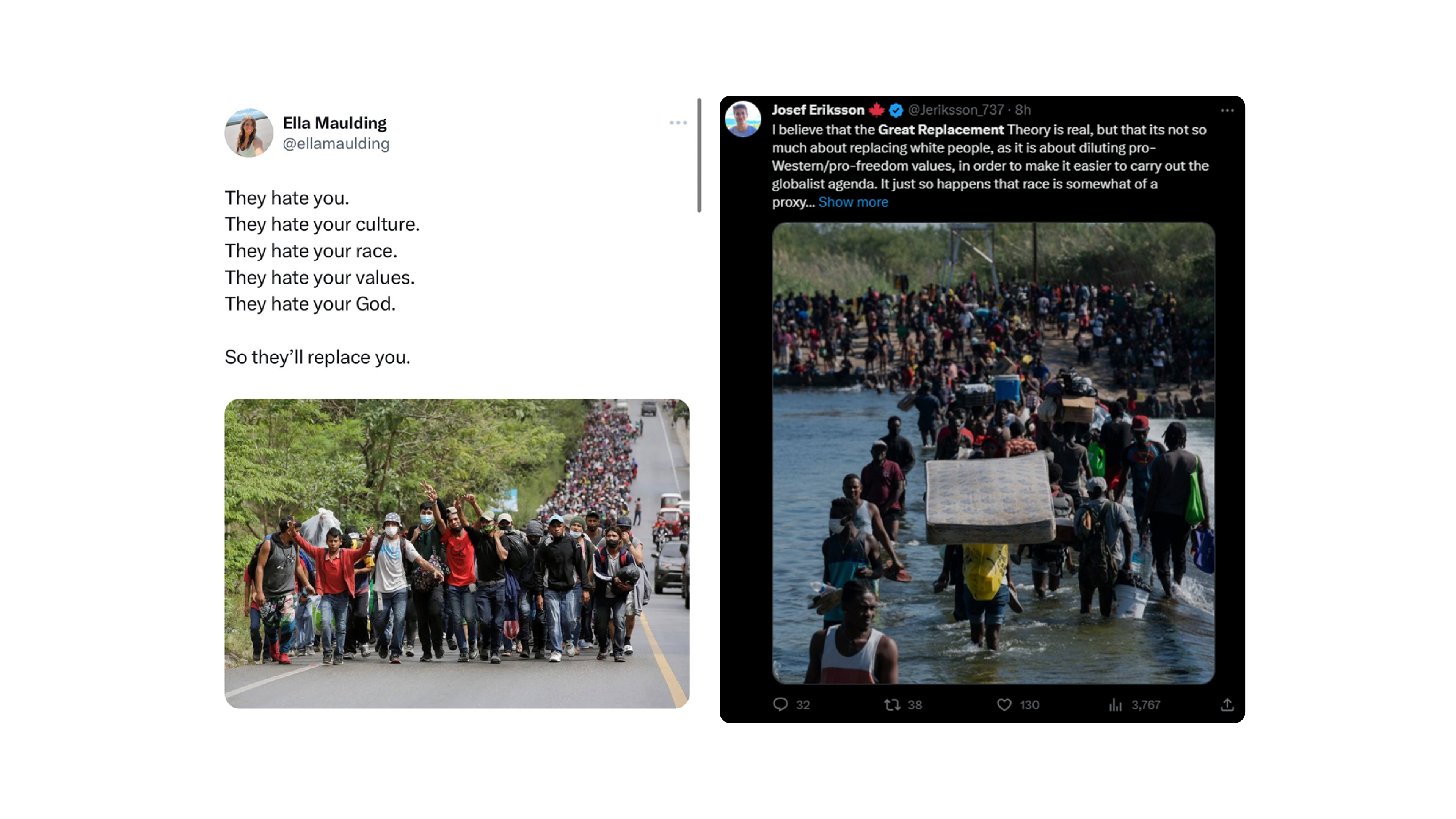 A good example is ‘The Great Replacement.’ This theory gained significant traction on online platforms as a conspiracy theory that native populations of Western countries were purposefully being replaced by immigrants.